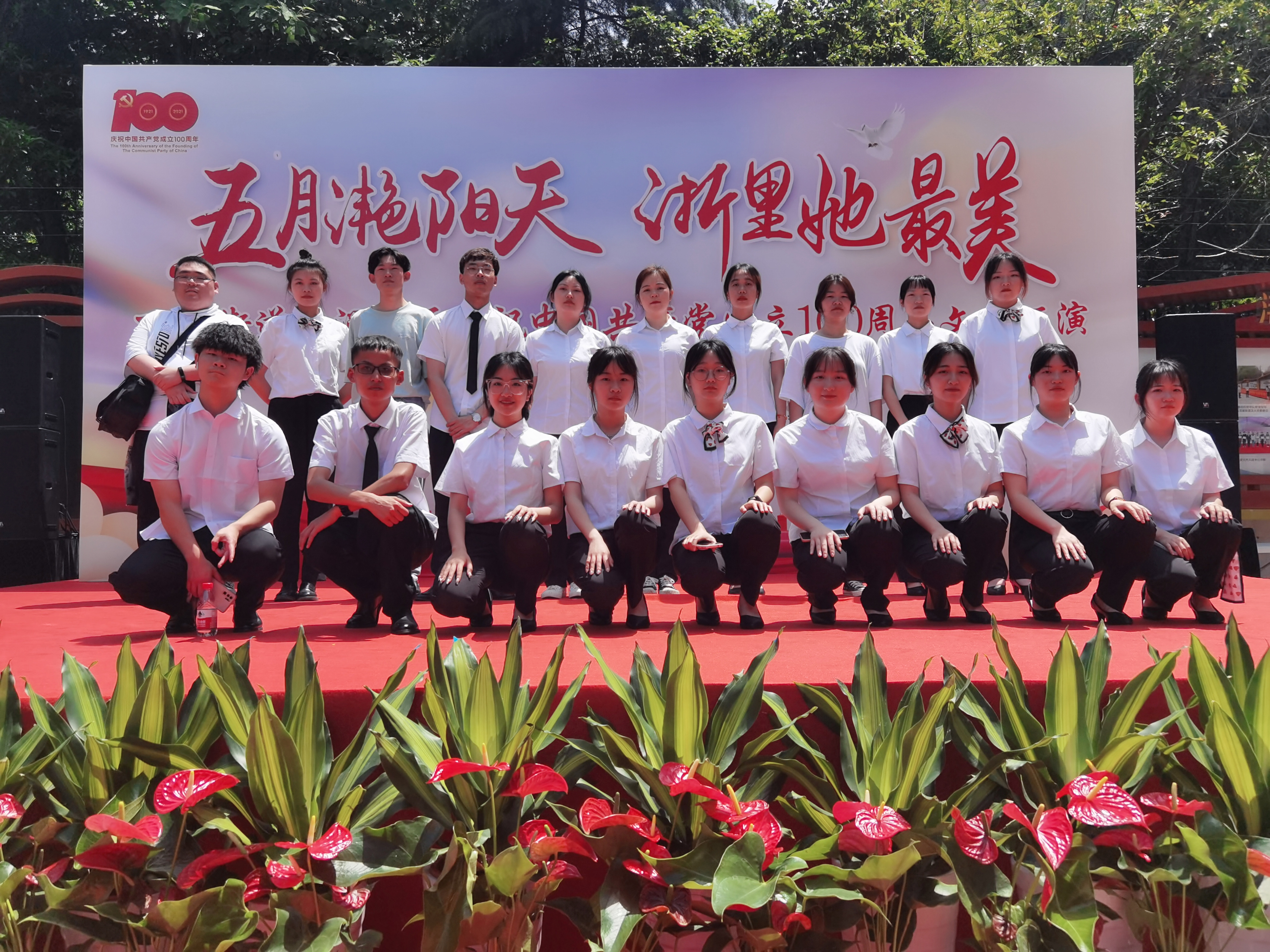 为迎接建党100周年,丰富居民文化生活,进一步弘扬中华民族传统美德,营造和谐幸福的宜居氛围。5月9日上午,文秘学生走进下沙街道滟澜社区,组织开展了以“五月滟阳天  浙里她最美”为主题的庆祝中国共产党成立100周年文艺汇演特别活动,为母亲节献礼。下沙街道妇联主席、总工会副主席沈小华,下沙街道公共服务中心主任黄瑞燕,大党委成员单位杭州电子科技大学外国语学院党支部书记吴一桥,大党委成员单位斓语文化传媒(杭州)有限公司创始人樊文爽等领导嘉宾出席活动。