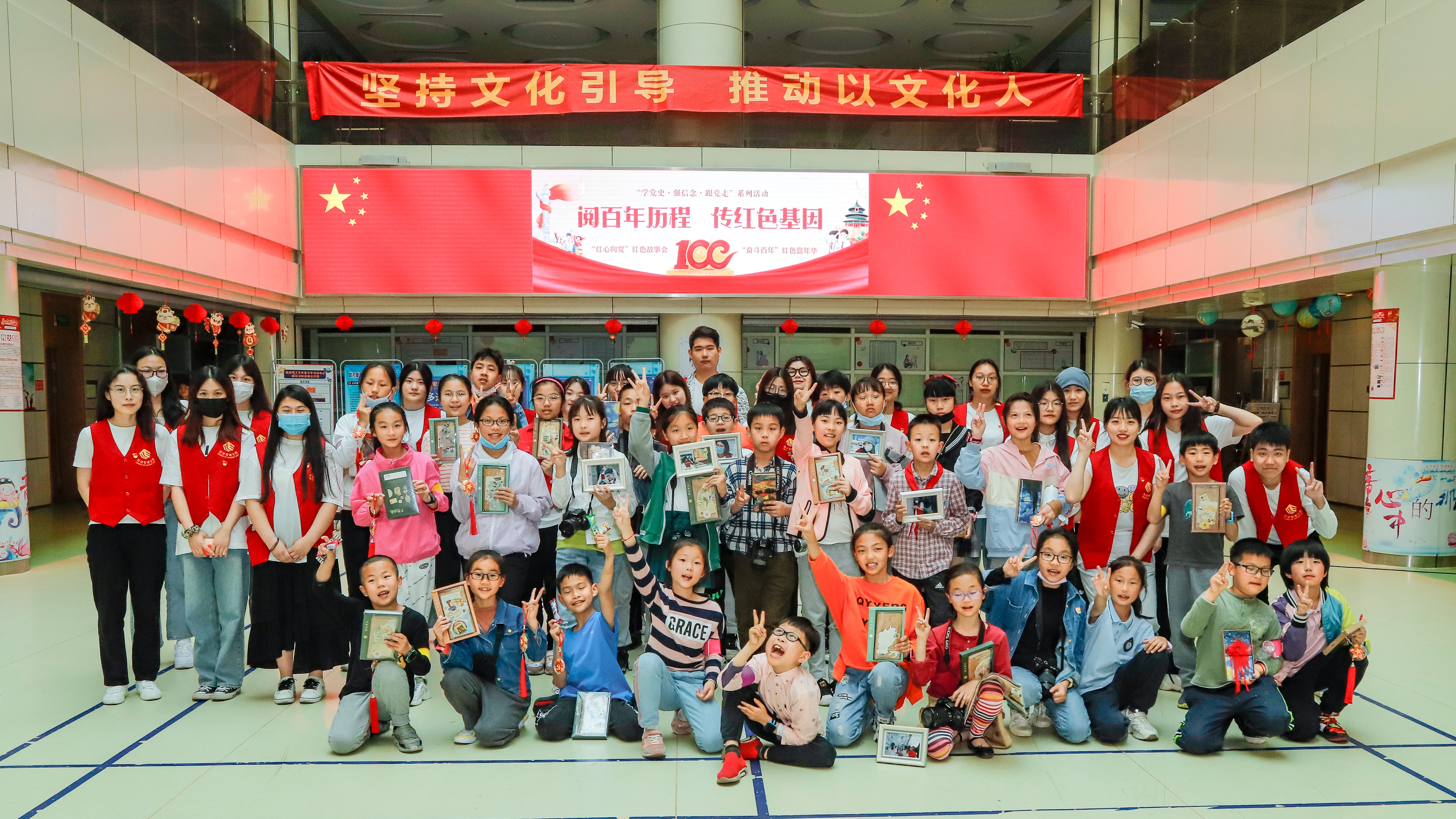 为教育引导青少年深入学习党史,厚植爱党爱国爱社会主义情怀。2021年4月29日,分院学生党支部组织了党史宣讲团来到江干区青少年活动中心,为活动中心的小朋友带去了“阅百年经典 传红色基因”的党史讲解,吸引了百余名学生参与。本次活动有分院组织委员胡晶晶带队,学生支部书记庞璁、吴方丽组织学生支部全体预备党员参加。其中19文秘班预备党员叶储硕为大家带去“赏名画 知党史”的党史讲解,叶储硕同志带着孩子们以“了解名画背后的故事”的方式,对《红军过草地》、《开国大典》、《众志成城》三幅“名画”进行赏析。以故事为切入点,结合视频,让“长征精神”、“开国精神”、“抗疫精神”,以党史故事的形式,让孩子们更加能够接受与吸收。