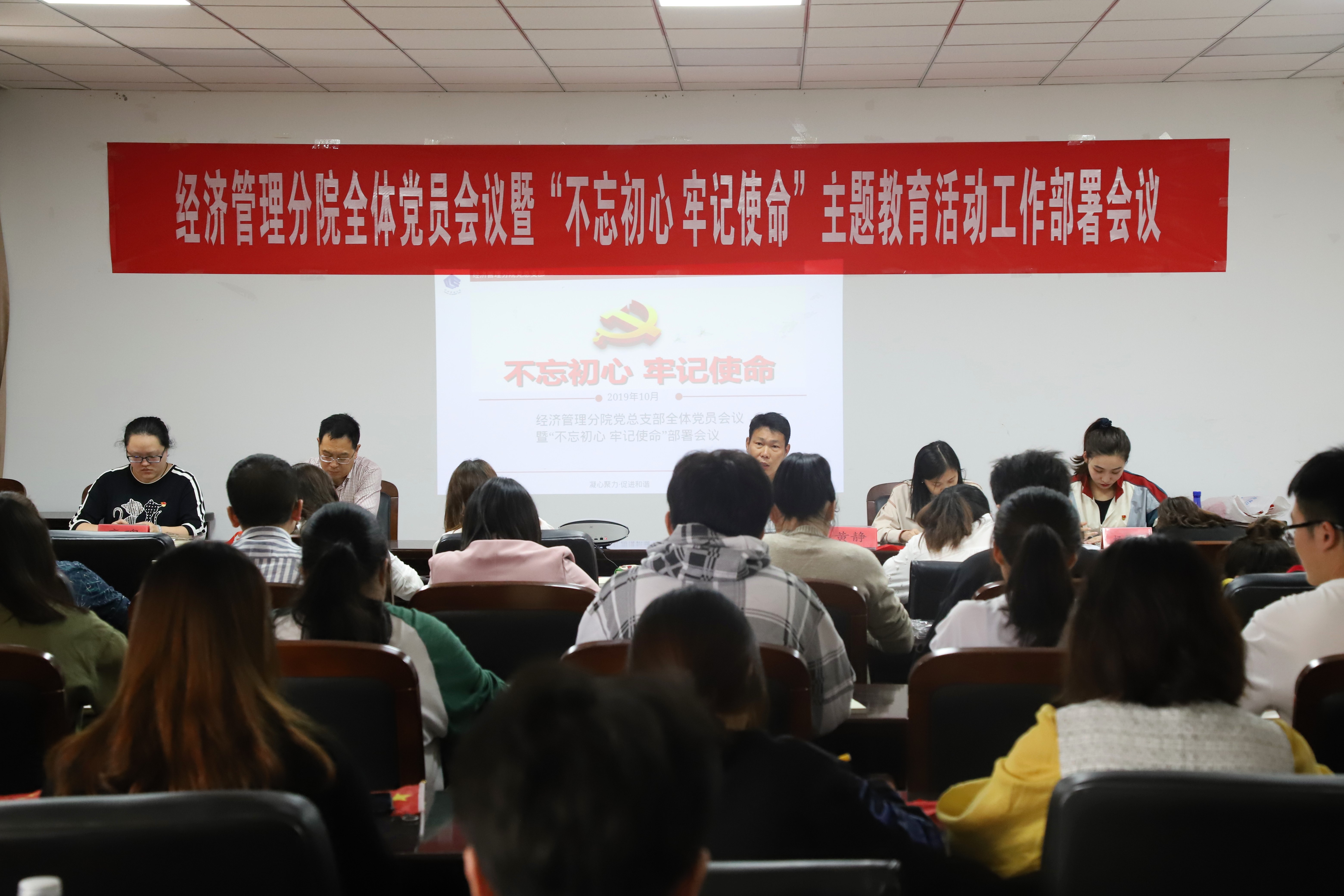 经济管理分院党总支部全体党员会议暨“不忘初心 牢记使命”主题教育工作部署