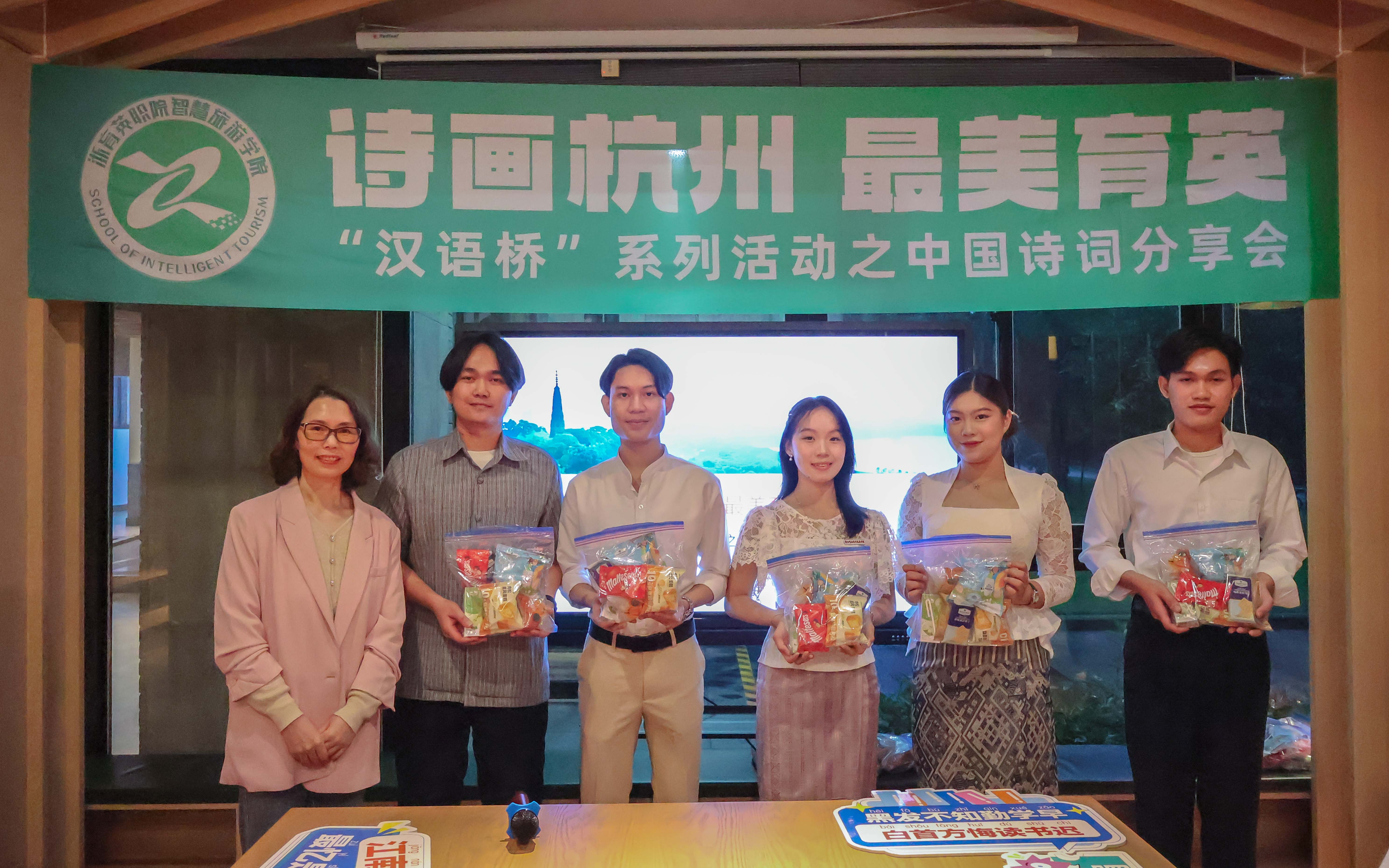 11月7日下午,星空彩票体育app平台"汉语桥"系列活动之"诗画杭州,最美育英"中国诗词分享会在书吧举办。来自老挝的留学生与6名中国学子共聚一堂,在葛秀华老师、辅导员董文老师的指导下,于星空彩票体育app平台副院长、党总支副书记张丹的引领下,开启了一场跨越国界的文化对话。
