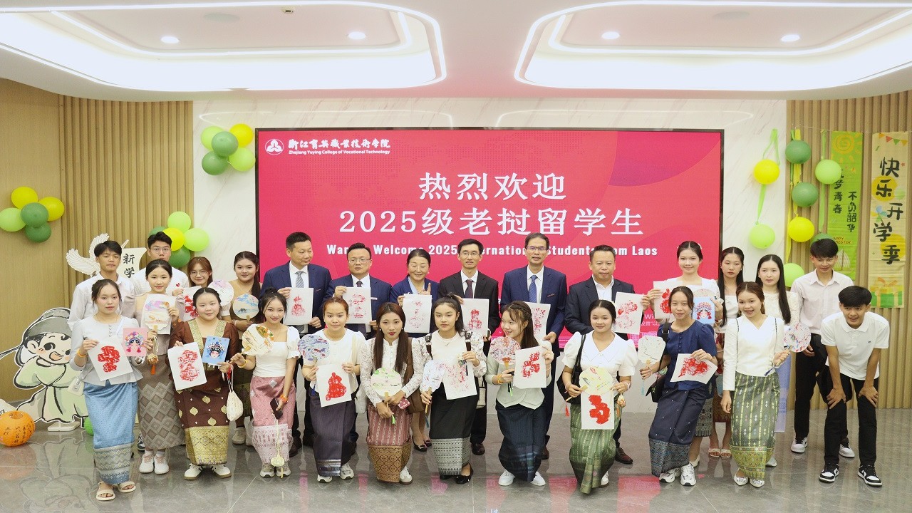 开学典礼在庄重而热烈的氛围中举行。浙江省教育厅国际合作与交流处、老挝教育与体育部职业技术教育司的领导,以及校院两级领导分别致辞,表达了对新生的欢迎与鼓励。学务部与旅游学院还精心准备了文艺节目,欢迎新同学的加入。25级老挝学生宁美作为新生代表发言,抒发了对未来学习生活的期待与决心。这一刻,不同文化背景的学子共同见证了梦想的启航,开启了老挝留学生在育英学院的新篇章。