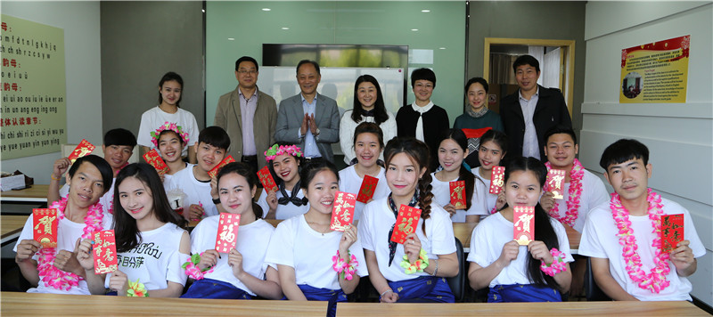 学院院长盛健,党委书记、副院长王锡耀,党委副书记、副院长谢鑫,以及经济管理分院领导谢厚华、谢剑峰、周岚,教务处处长罗振华,外事办副主任顾雪梅等领导和老师们来到老挝留学生身边,为他们送去真诚的祝福。