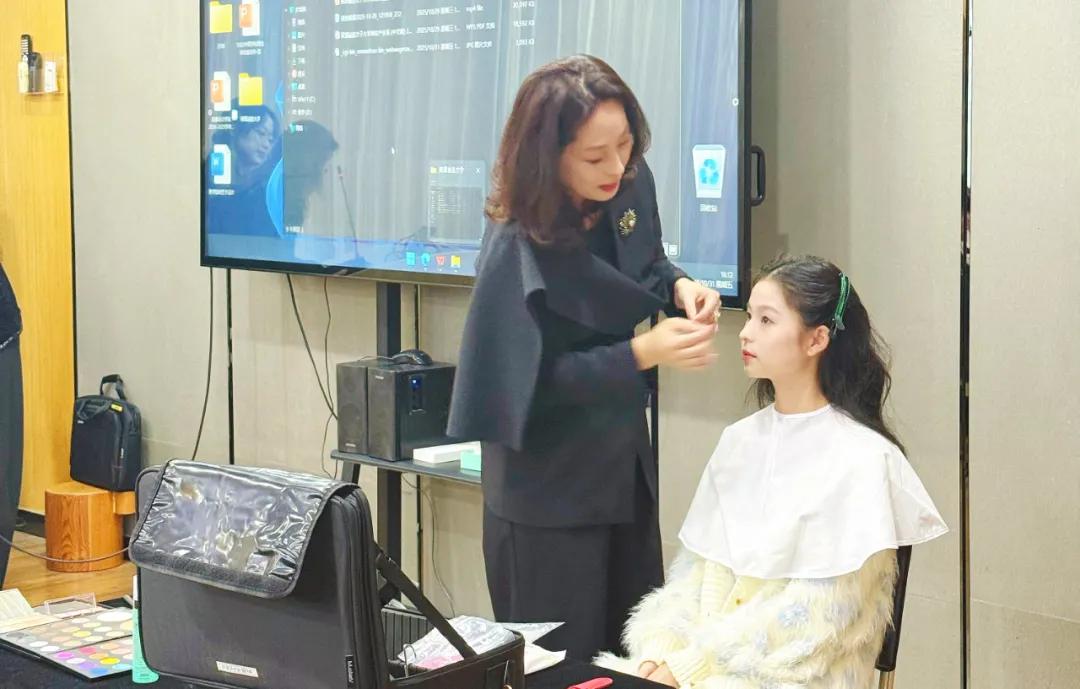 诚信女子大学美妆融合研究生院院长金周德教授、美妆产业系主任韩志洙教授分别就“全球美妆产业趋势与K-Beauty品牌创新模式”和“全球彩妆流行趋势及K-POP妆容”展开讲解。讲座现场,韩志洙教授还进行了前沿美妆技术的操作演示。师生们踊跃参与,在色彩搭配、技法应用等环节积极互动。