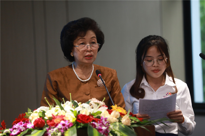 老挝外交部官员、老挝驻上海总领事馆前总领事西莎美·銮珍达翁感谢中国对老挝经济文化教育等的大力帮助,感谢浙江育英职业技术学院为老挝培养留学生,并祝贺育英学院首届老挝留学生顺利毕业,希望他们学成回国,为老挝建设发展做出贡献。