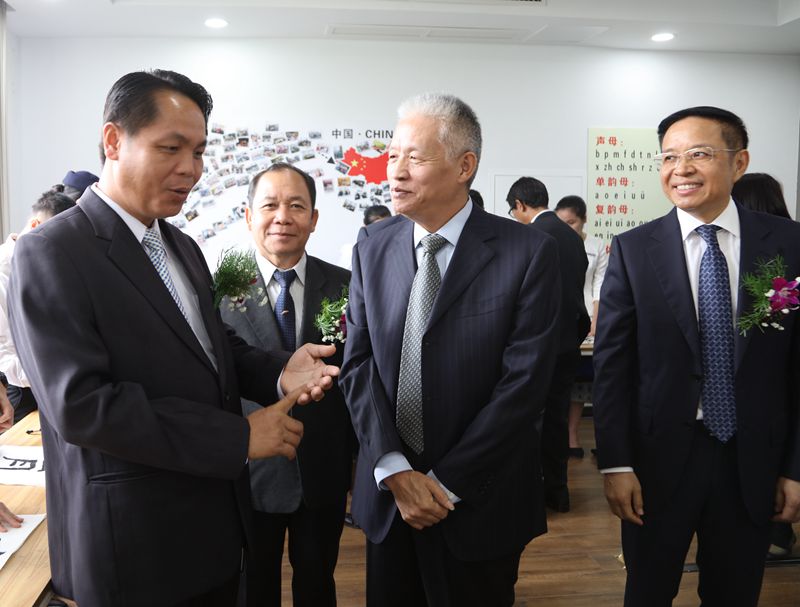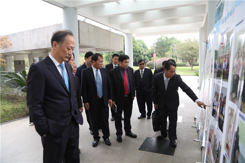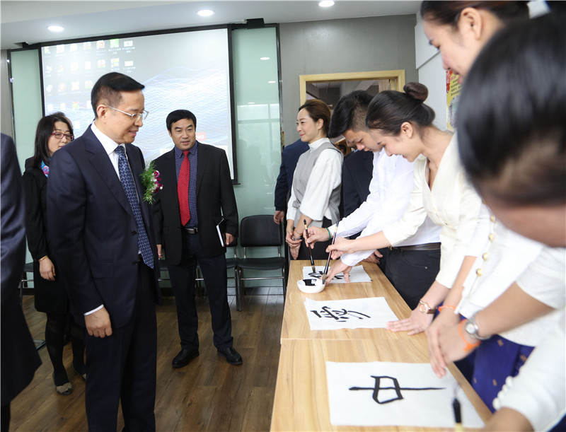 本朋副司长一行还观看了2016级老挝留学生的专业技能展示、传统文化展示、中文导游词讲解。看到汉语零基础入学的首届老挝留学生们经过一年的学习取得巨大进步,能够流利的中文解说和翻译,本朋一行十分欣慰,赞不绝口。