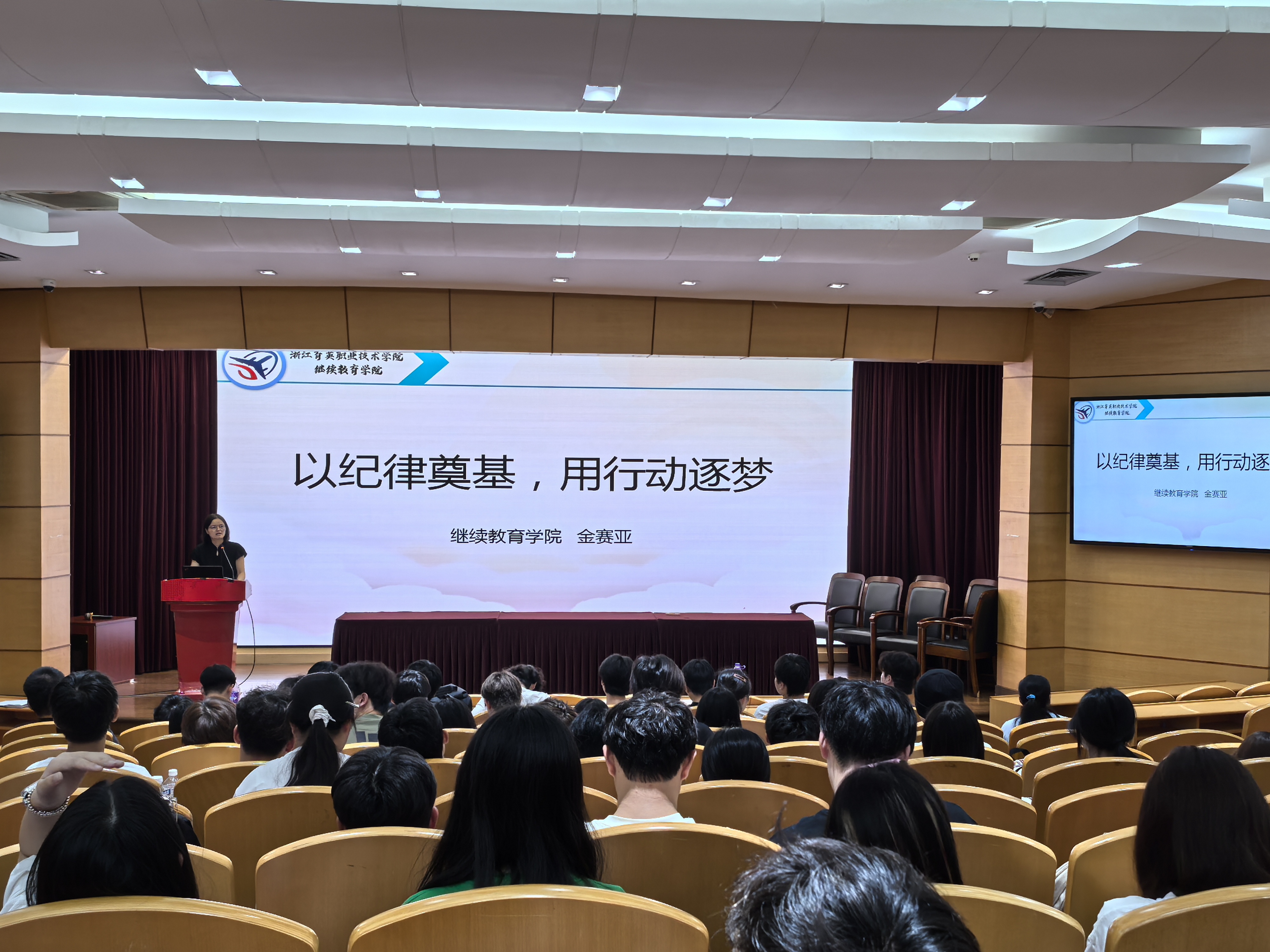 为帮助25级技能培训班新生快速适应校园生活、树立规则意识,2025 年 9 月 10 日 9:00,继续教育学院在三号楼 3 楼报告厅举行始业教育之纪律教育专题活动。学院直属党支部副书记、院长助理李巧巧,学工办主任金赛亚,团总支书记方依纯及全体辅导员、25 级技能培训班学生参加活动。