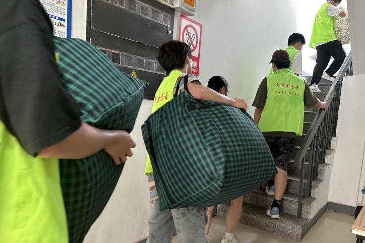 由学院团总支、学生会各部门成员以及班级骨干、新生助理等组成的志愿者团队看到一个又一个的学弟学妹踏入学校大门时,连忙大步向前领着他们来到新生报道处,热情地关心他们的需求,悉心解答他们的疑问。在办理好报到手续后,新生们纷纷来到寝室,志愿者们不惧烈阳,不畏辛苦接过2024级新生们手中的行李。