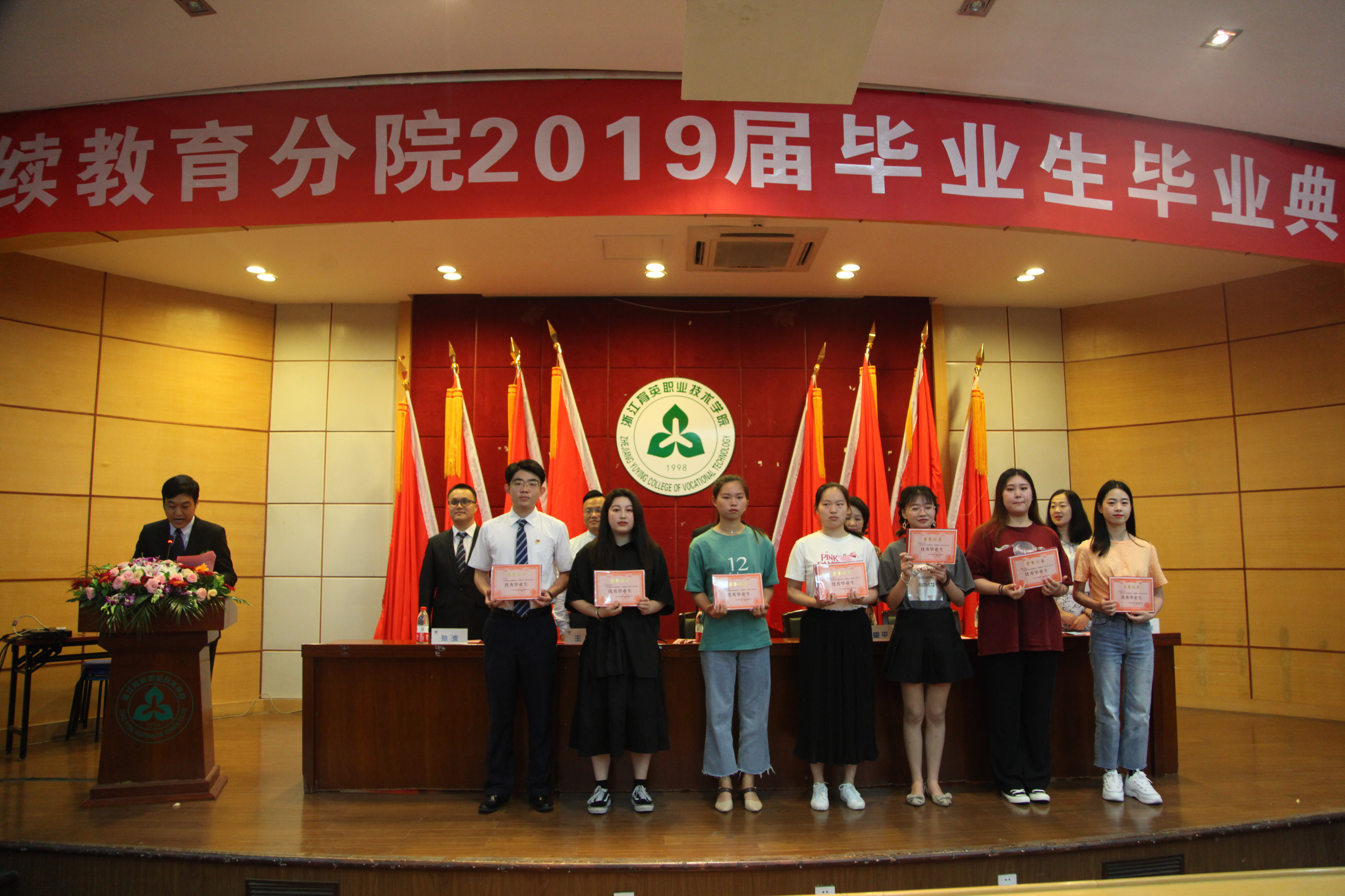 典礼上,学院领导为分院2019届优秀毕业生代表颁发了奖状和毕业证书。
