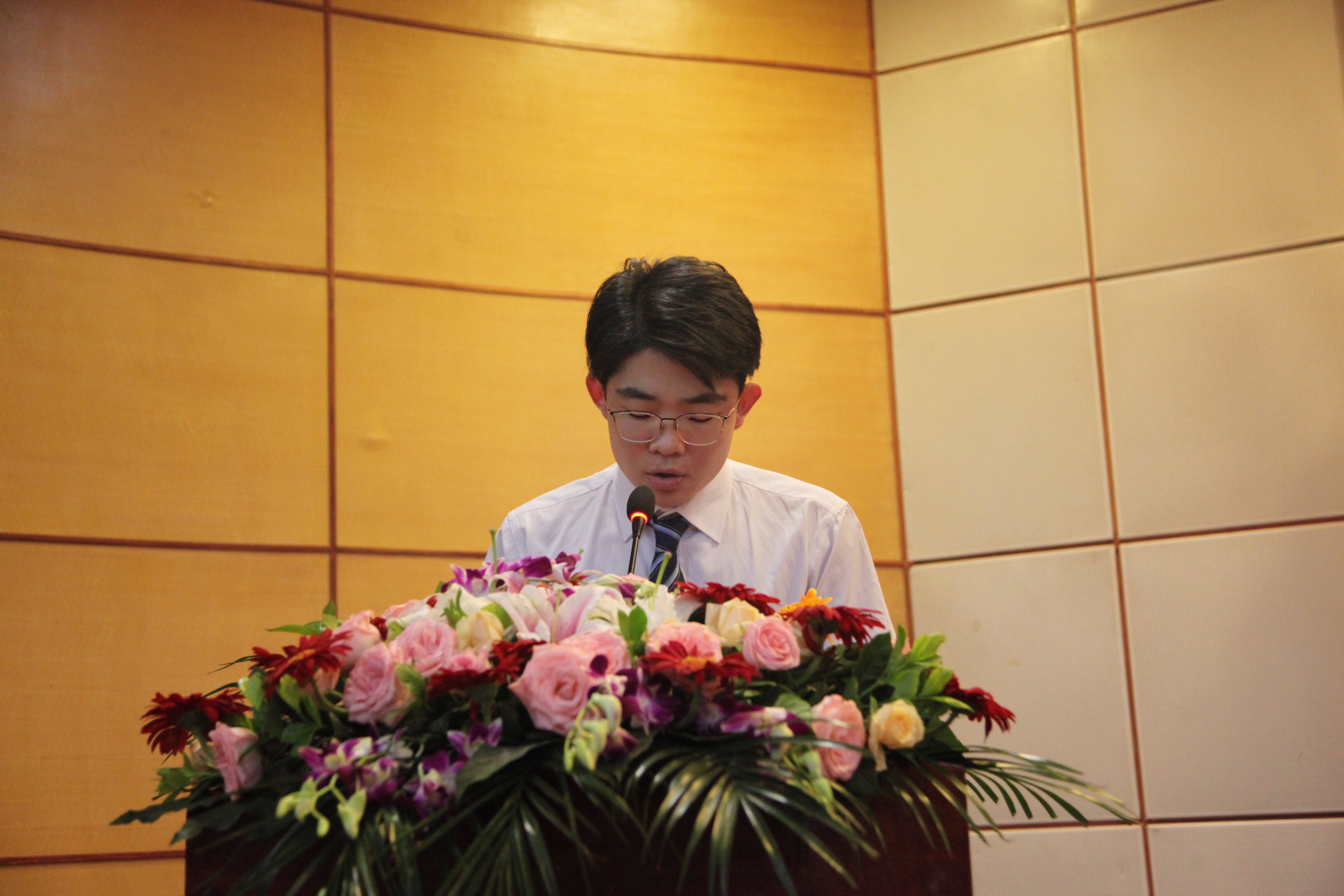 典礼由分院院长崔海辉主持。他希望同学们牢记母校情谊和师长教诲,秉承育英优良传统和精神,牢记“厚德载物 自强不息”的校训,为实现自己的人生价值和中华民族伟大复兴的中国梦努力奋斗。