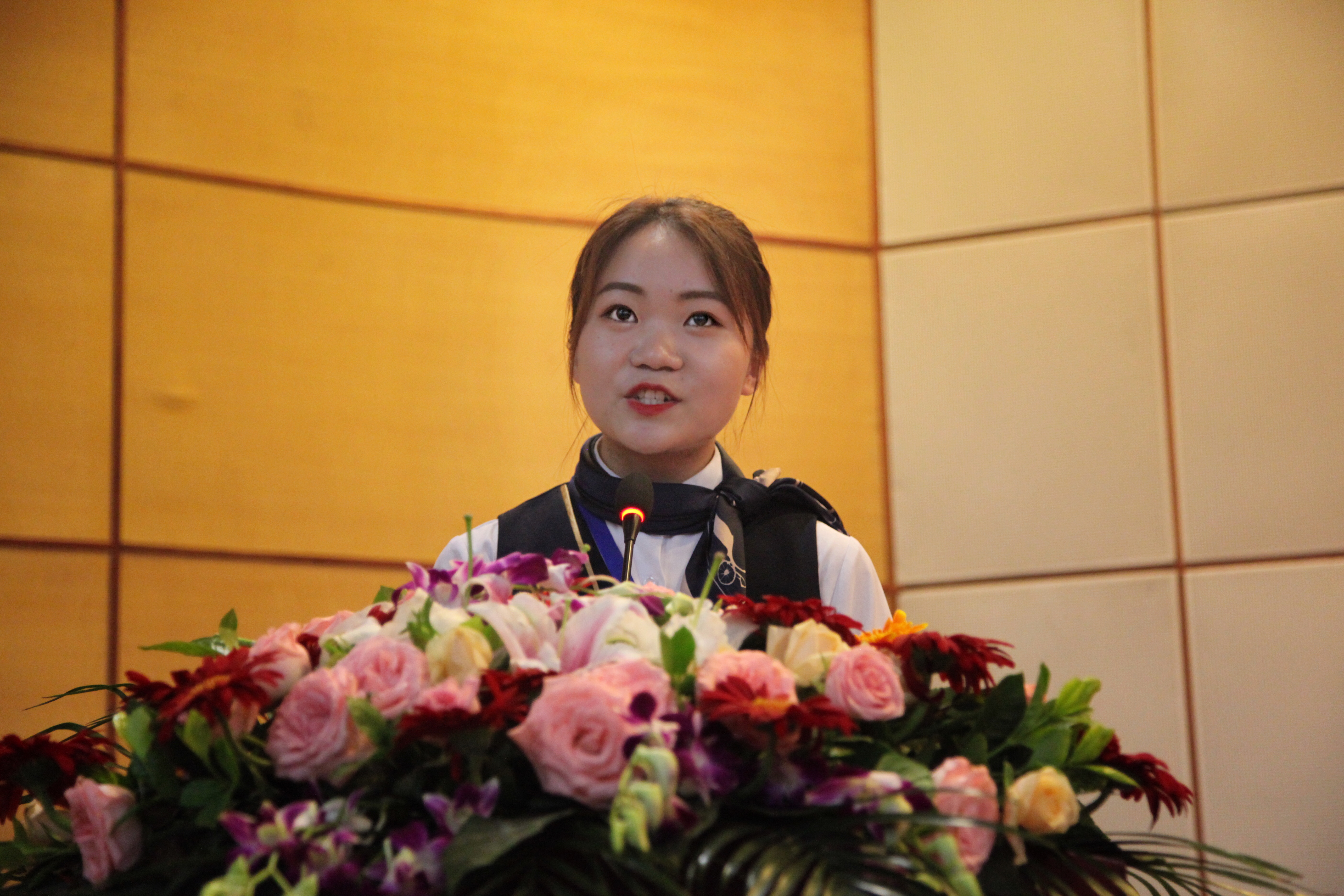 教师代表金文欣向即将踏上新征程的毕业生们寄予了真诚的祝福。毕业生代表16空乘3班于卓同学发言,感谢几年来老师、同学对自己的培养和照顾,回顾了在母校的点点滴滴及对未来的无限展望与期待。