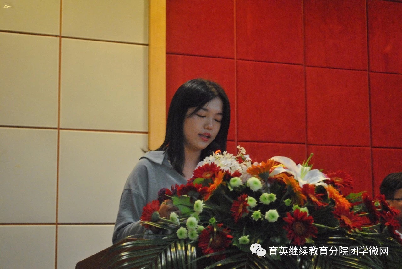 优秀毕业生15空乘3班章梦瑜代表全体毕业生感谢母校的培育之恩。她也道出毕业生们的心声:将会努力工作,为母校争光。