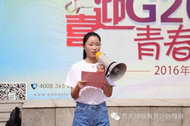 5月4日上午8:30,继续教育分院15级全体学生在中学部操场举行2016年成人节系列活动启动仪式暨服务G20学生动员会,分院党支部书记副院长施红波、学院团委孙钦、杭州约行新能源汽车服务有限公司胡磊出席本次活动。同学们穿着自己设计的T恤,在属于自己的青年节,行一个与众不同的成人礼。