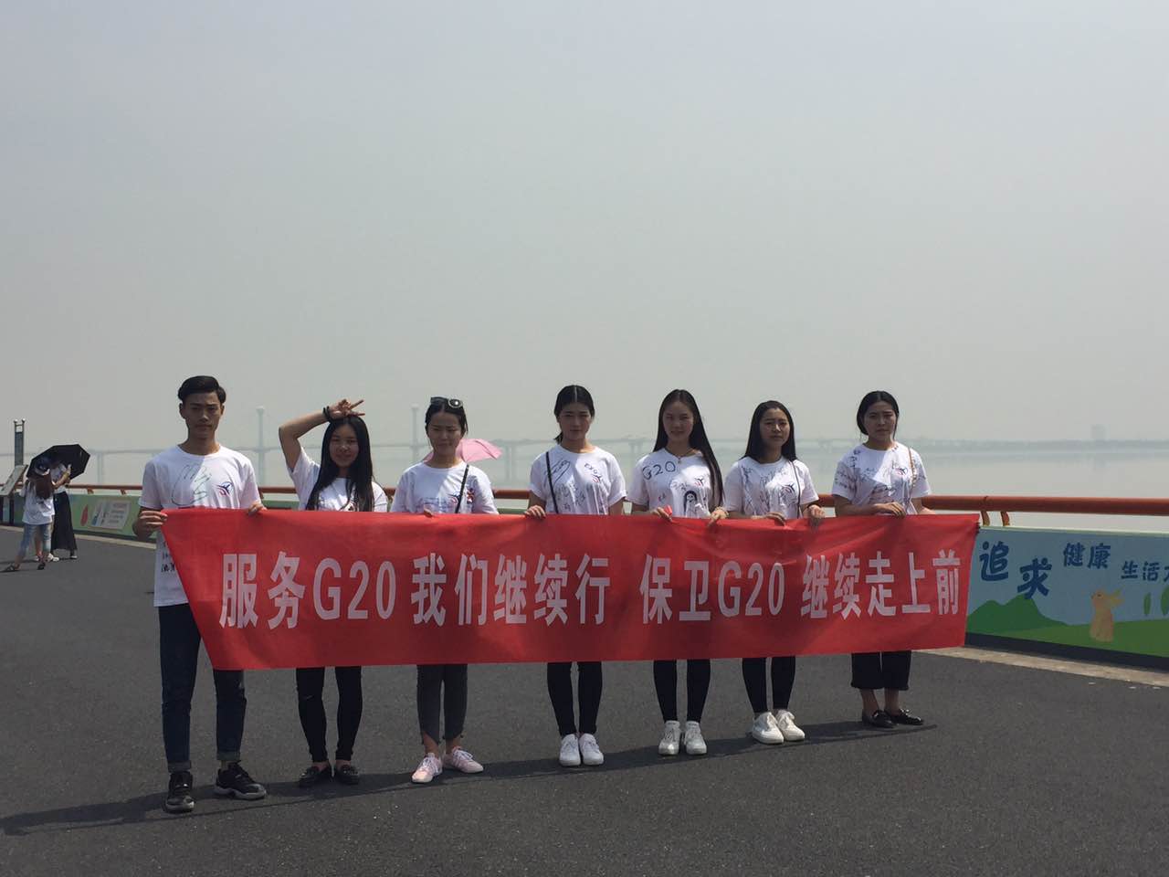 仪式结束后,全体师生沿着6号大街步行至钱塘江畔,用青春毅行来庆贺成人礼,也用行动来表明我们分院师生服务G20的决心和信心。