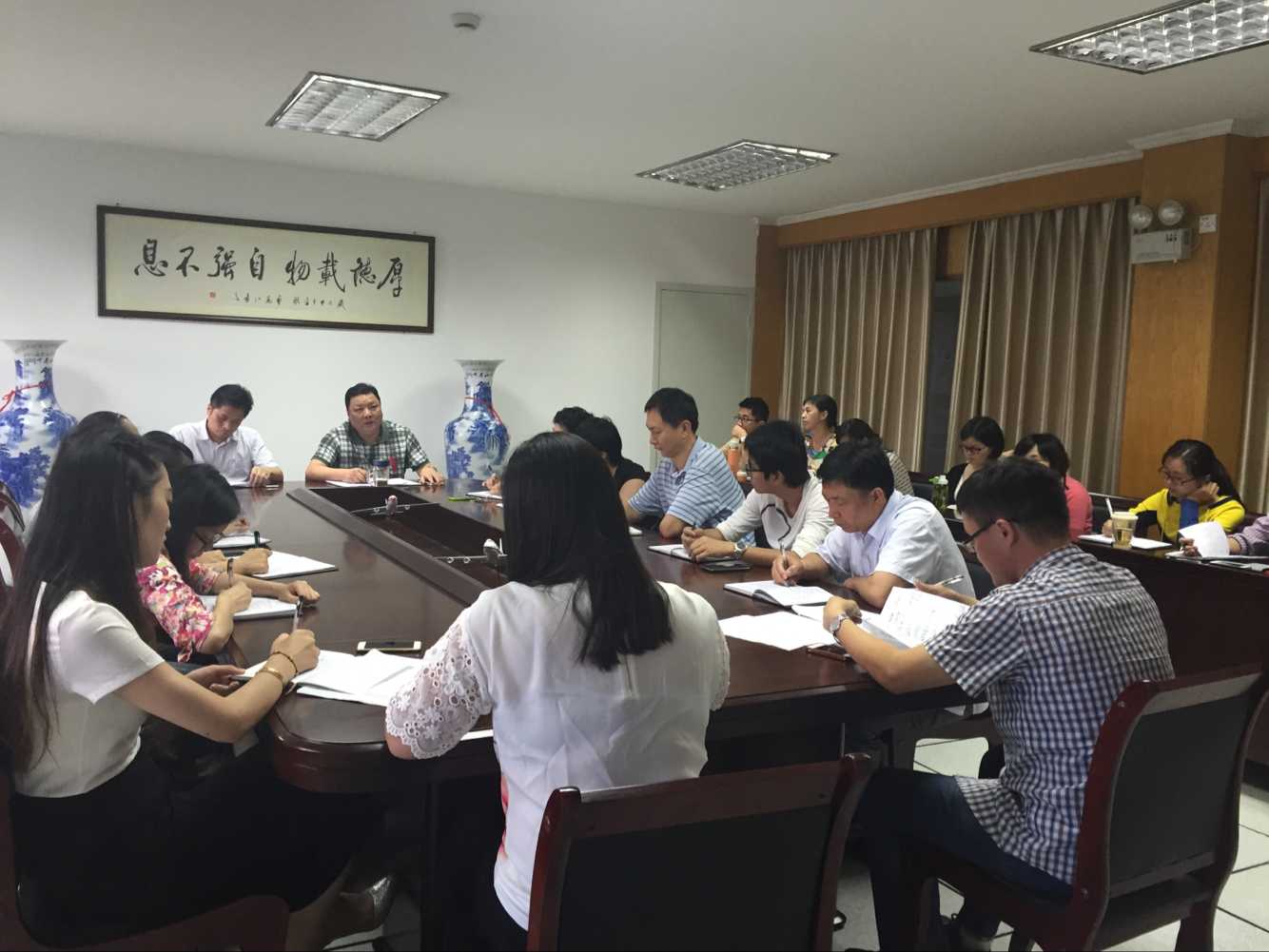 2015年7月9日下午14:00继续教育分院全体教职工大会在四楼会议室召开,会议由分院党支部施红波书记主持。