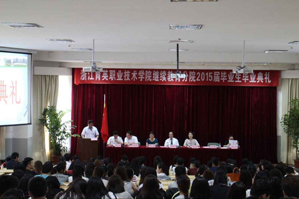 分院卢庆富院长,满怀激情和欣慰的致辞,回忆了12级毕业生在分院三年里取得的突出成绩,其中不乏有21届新丝路中国模特大赛浙江赛区亚军、全国五十强,2014世界旅游小姐中国直选区亚军的王江月同学;分院第四届学生会主席,曾获二等奖学金、三好学生、优秀学生干部称号,现自主创业任公司总经理的叶斌同学等等枚不胜数,本届毕业生在学业方面更创下了分院有史以来的辉煌,毕业率达到了91%,卢院长在发言中表达了对同学们的殷切希望,祝同学们未来的路越走越踏实、越走越宽广。