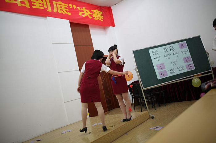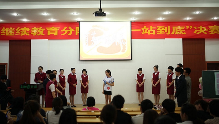 2013年5月9日晚,继续教育分院在教学楼五楼阶梯教室举行了首届“我的中国梦·育英一站到底”决赛。这是一场创新形式的知识竞赛,采用江苏卫视《一站到底》的节目形式进行对擂答题。经过初赛的笔试答题,共有13位同学晋级,在决赛中为我们一展智慧的魅力。我们的题库囊括历史、政治、军事、体育、娱乐、地理以及空乘专业知识等各领域,选手们渊博的知识给在场的观众留下了深刻的印象。最终,12空乘6班的姚梦婷同学见好就收,带走了场上的8件奖品,而12空乘4班的李素雅同学则凭运气和实力获得“站神”奖杯。