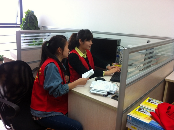 2013年3月初,开发区青少年宫的兴趣班正式开始运作,志愿者服务工作由浙江育英职业技术学院继续教育分院、杭州师范大学和中国计量学院三支队伍负责。我们分院的志愿者岗位是前台接待和教务巡查。前台的同学主要负责家长接待、科目咨询以及活动部办公室的日常事务,日后将慢慢地扩展到开发区青少年心理健康咨询热线的接听等其他业务;教务巡查的同学负责各项目老师的考勤、收集各班学生点名表并及时与缺课学生家长联系,协助教学部确保兴趣班的教学任务顺利开展。