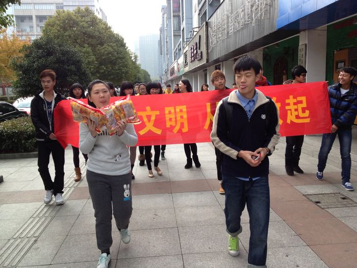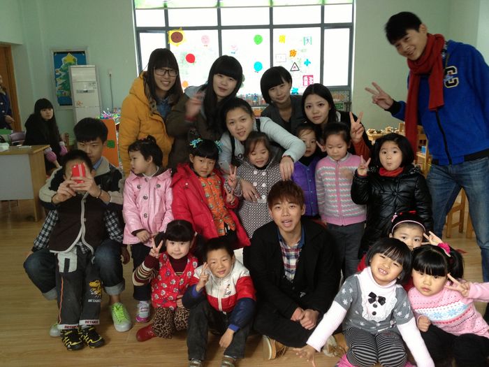 9:30,我们拉着横幅,有秩序地出发啦!寒风阵阵,却丝毫阻挡不了我们前进的步伐。刚进幼儿园,我们就被可爱的小朋友们吸引住了,他们是那么的天真,那么地单纯,跟他们一起,我们都仿佛回到了孩提时代。