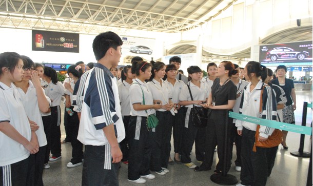 当天胡刚副主任陪同,温州市职业教育中心师生一行来到杭州萧山国际机场,参观了国际、国内出发大厅、VIP贵宾区、机场停机坪及到港服务区,初步了解了机场出入港、出入境服务流程。广大师生兴趣浓厚、热情高涨,激发了学生对空中乘务专业的向往。