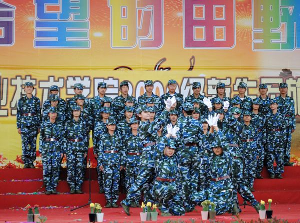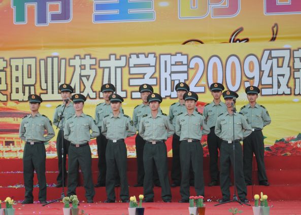 彩旗飘扬,军乐高奏。10月19号下午一点钟,学院田径场上一片绿海,参加军训的全体新生在此举行09年军旅歌曲大赛。