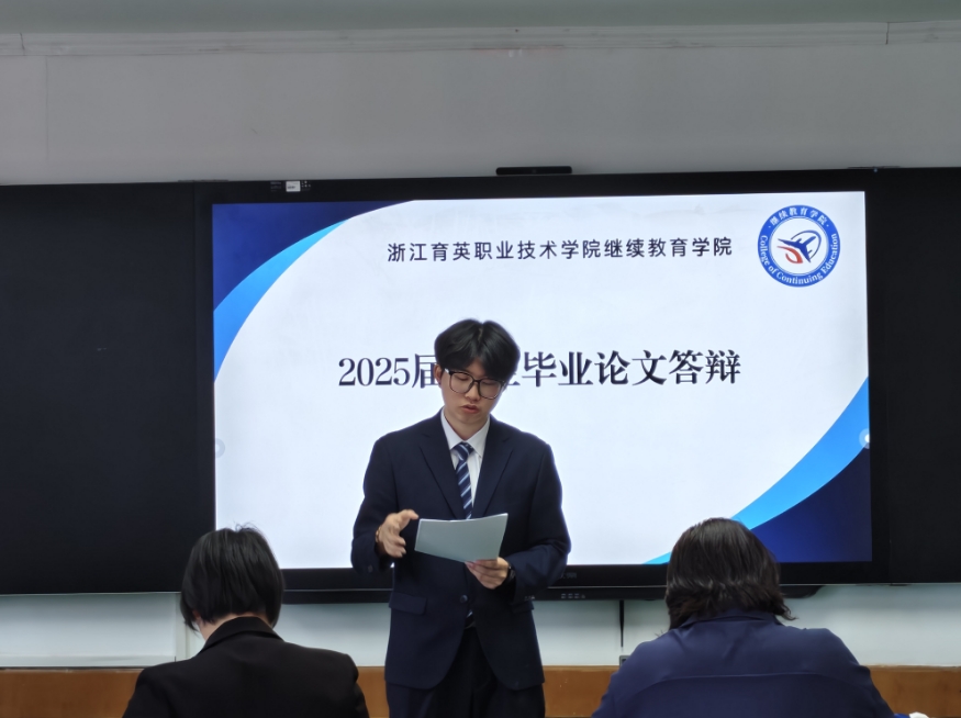 2025 年 5 月 7 日,浙江育英职业技术学院继续教育学院2025 届毕业论文答辩工作顺利开展。本次答辩为期一天,共设置 6 个答辩场次,对毕业生的毕业综合实践课题成果进行全面检验。