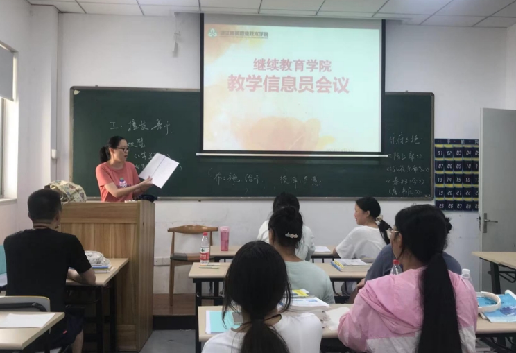新学期为了更好地推动教学改革,加强教学过程管理和教风学风建设,提高教学质量,浙江育英职业技术学院继续教育学院于2024年9月2日12:30,在生活区303教室召开教学信息员会议。参会人员有继续教育学院教务办金文欣老师和继续教育学院各班级的教学信息员。会议由金文欣老师主持。