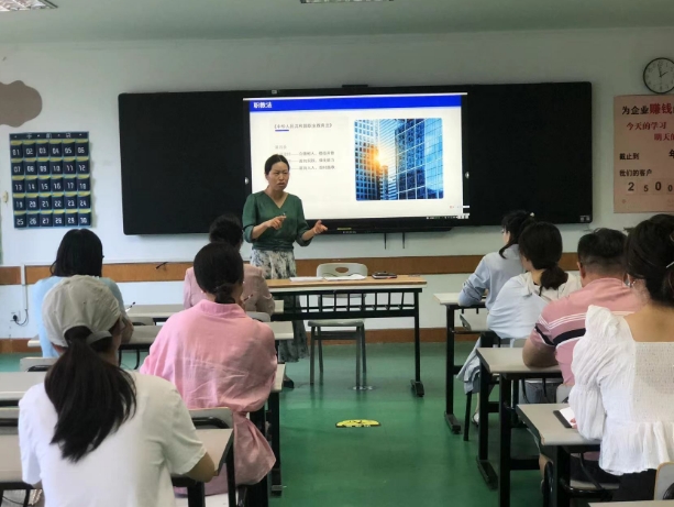 会上,叶督导首先对《中华人民共和国职业教育法》进行解说,着重对第四条进行了讲解,提出“三个必须坚持”,必须坚持立德树人,德技并修;必须坚持面向实践,强化能力;必须坚持面向人人,因材施教。其次,叶督导对“一页纸教案”和有效课堂教学设计进行了详细的讲解,先对“一页纸教案”中的教学目标设计进行了示范,如怎样设计技能目标、知识目标、素养目标和思政目标,在语言用词上怎样层层递进等。再举例说明了,在效课堂是怎样进行课堂导入的?如情景、案例、问题等导入方法。最后对教学重点、教学难点、学情分析、教学设计、课时分配等环节进行了说明,并以王铭老师的韩语课的一页纸教案为例,进行了详细解决和点评。她强调了教学设计的重要性,如何通过创新的教学方法激发学生的学习兴趣,以及如何教学生运用信息化手段进行课后自学和个性化指导帮助学生解决学习困难。