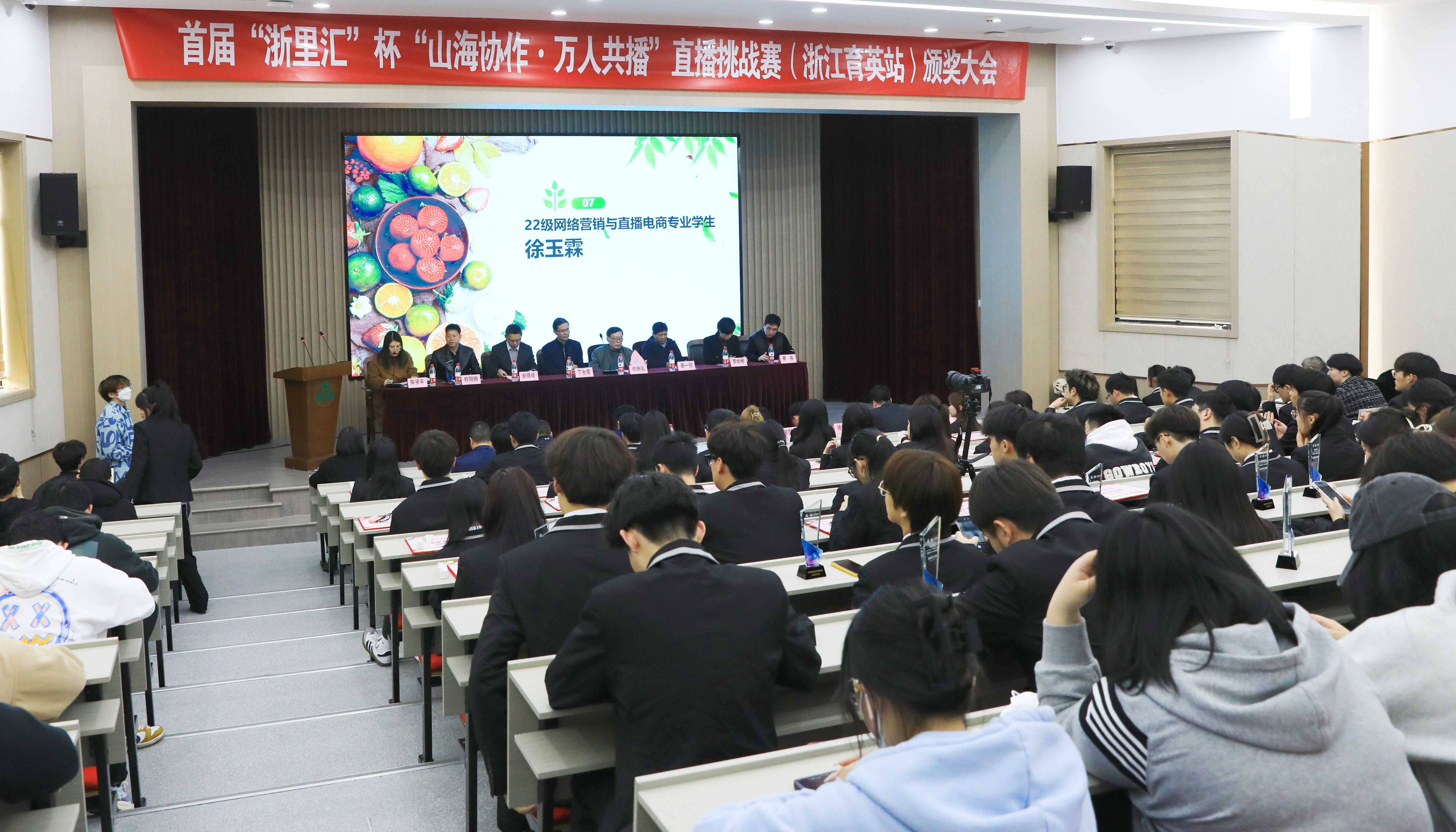 本次共有71个参赛小组、346名学生参与比赛,涉及电子商务、直播电商、跨境电商、国际商务、市场营销、人物形象设计等9个专业;经过缜密的数据采集和专家评分,最终评选出一等奖6项,二等奖12项,三等奖24项,另有20名参赛选手被中国联通直播中心授予“未来星”主播和运营官,3名参赛选手被浙江省学徒制中心授予“优秀创作者”称号。