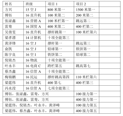 2017年6月2日至4日由浙江省教育厅,浙江省体育局举办,在浙江师范大学举行的浙江省大学生田径比赛,我院派出17名运动员参加比赛。本次比赛分为本组、专科组和高水平组。我院学生参加专科组比赛。经过两天激烈的争夺,我院队员获得了11金7银4铜的优异成绩,再次展示了育英体育的实力,为育英赢得了新的荣誉!
