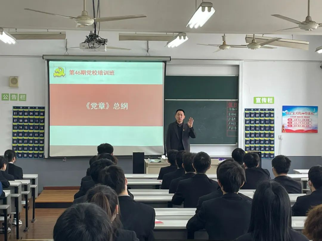 随后,第46期党校第一讲——《党章》总纲开讲,由石宇钦老师主讲。石老师在课上提到党章的总纲,是整个党章的总则和灵魂,它展现了党艰苦奋斗和辉煌发展的基本例程,旗帜鲜明的表达了党的思想理论、政治主张及路线方针政策,在党章中具有举足轻重的地位和作用。在学习过程中同学们专心致志,大家了解了党章,知道了党的指导思想以及党的性质,党章是党的总章程,是全党必须共同遵守的根本行为规范。在讲到关于党的性质时,石老师特别提到,在社会建设、生态文明建设上,我们的小e工们都做出了许多贡献,在此也提到了疫情期间为隔离寝室送餐的同学们。但前方的道路还有很长不能就此止步,我们都应该积极投入,为把我国建设成为富强、民主、文明、和谐、美丽的社会主义现代化强国而奋斗。