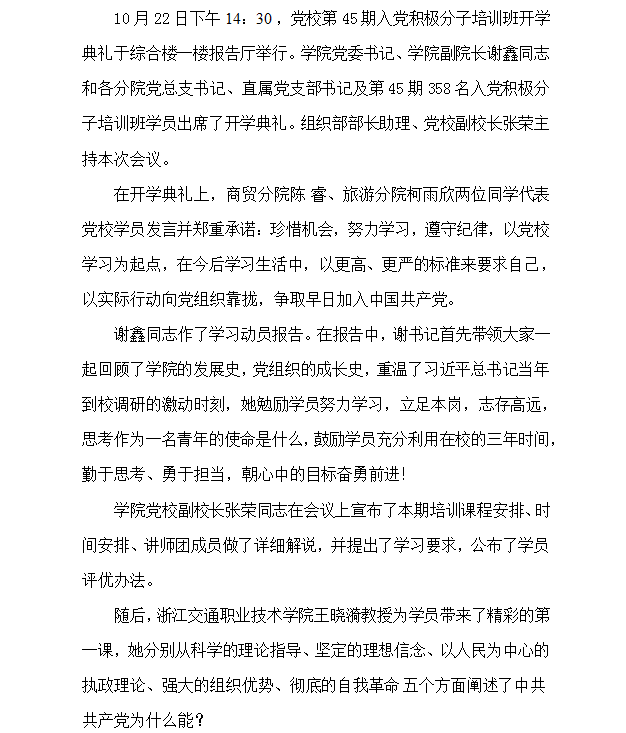 党校举办第45期入党积极分子培训班开学典礼