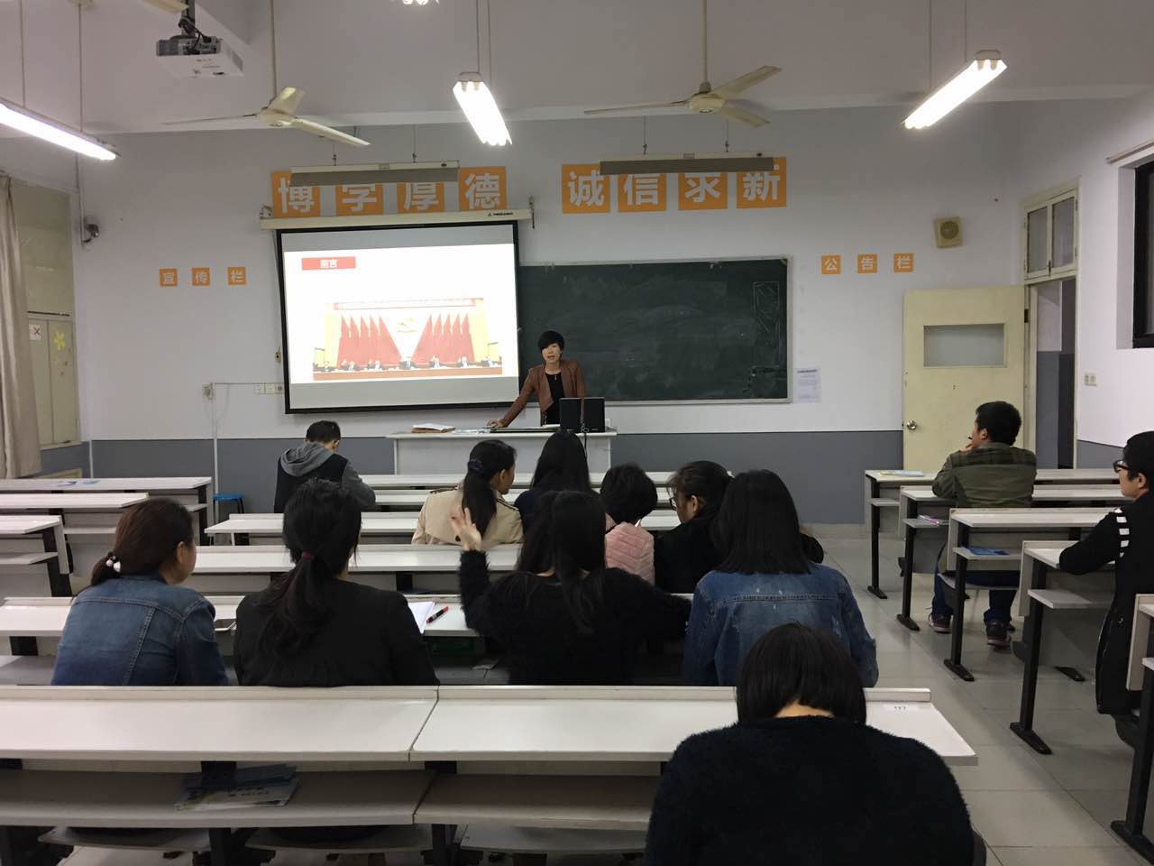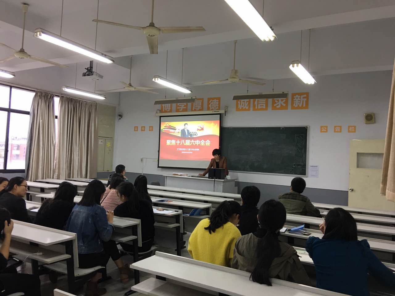 1115日下午,信息分院党总支在1507教室开展党员固定活动日,全体党员学习党的十八届六中全会精神,分院党总支罗妮娜书记主讲。