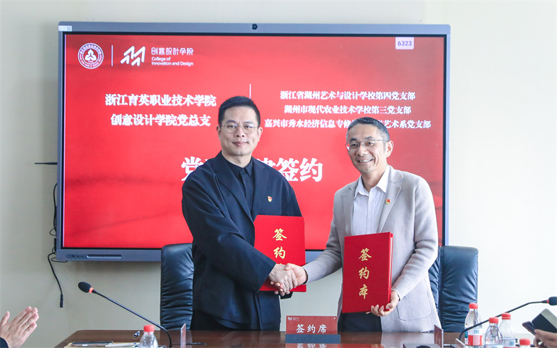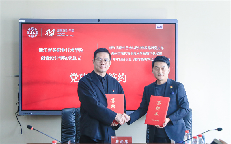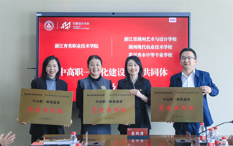 10月23日,浙江育英职业技术学院创意设计学院与湖州艺术与设计学校、湖州现代农业技术学校、嘉兴秀水中等专业学校,在我校举行“中高职一体化建设党建共同体”签约暨揭牌仪式。
