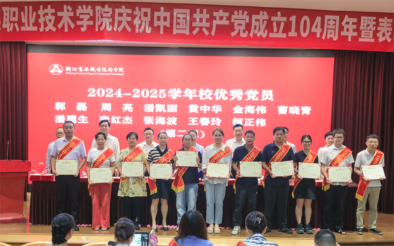 邬佳宣读表彰决定。2025年度浙江省高校思政微课大赛获奖者,2024年度浙江献血总量标杆高校、千人献血率标杆高校获奖集体代表,学校2024-2025学年先进基层党组织、优秀党员、优秀党务工作者和先进党章学习小组获奖者及集体代表受到表彰。