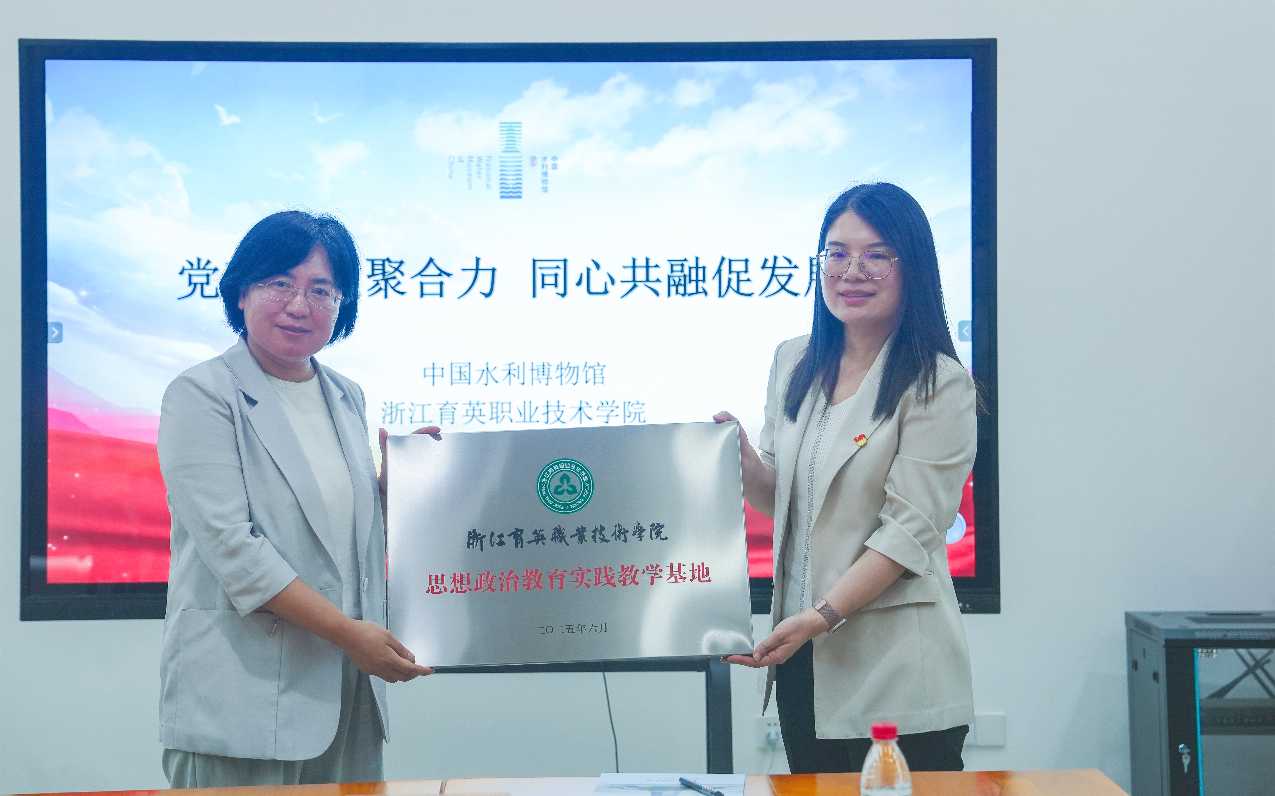 6月11日下午,浙江育英职业技术学院与中国水利博物馆党建共建暨“大思政课”实践教学基地签约揭牌仪式在中国水利博物馆三楼会议室举行。校党委书记、副校长谢鑫,中国水利博物馆党委委员、副馆长叶红蕾,公共教学部党总支书记、主任、马克思主义学院院长陈贤平,公共教学部党总支副书记、副主任谢剑峰,中国水利博物馆展陈处副处长魏晓明,宣教处活动部主管张瑜等出席。教师党员代表参加仪式。