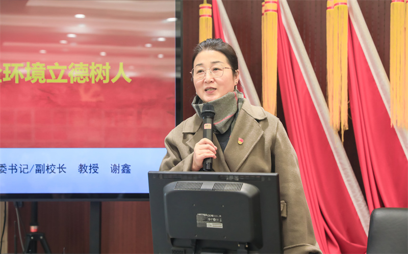揭牌仪式后,谢鑫以《党建引领 全环境立德树人》为题讲了一堂微党课。她从“有为”和“有位”的辩证关系、“不是”和“是”的逻辑关系、新时代新征程党组织的使命任务三个方面谈了对党建工作的认识。同时,从党建引领、实现全环境立德树人出发,提出了解决好思想认识问题、机制建设问题、党业融合问题、队伍建设问题等四个方面的思路和举措,就如何构建完整高效的党建工作体系,实现高质量党建引领学校高质量发展,为做好中学党建工作给出了专业性和针对性的指导。