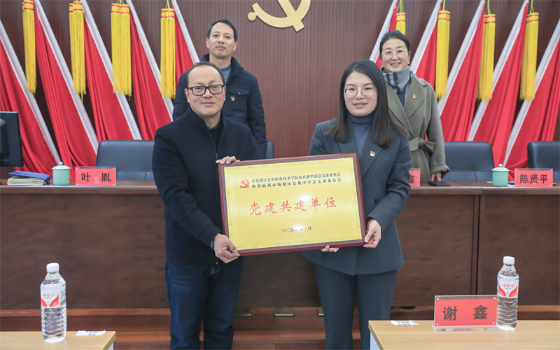 2024年12月25日下午,浙江育英职业技术学院与钱塘区景苑中学大中小学思政教育一体化共同体暨党建共建单位揭牌仪式在景苑中学举行。育英学院党委书记、副校长谢鑫,公共教学部党总支书记、主任、马克思主义学院院长陈贤平,党总支副书记、副主任谢剑峰,景苑中学党总支书记邱松良,党总支副书记、校长叶胤,党总支委员、副校长张文章出席揭牌仪式。我校公共教学部党员教师代表和景苑中学全体党员教师参加。叶胤主持会议。