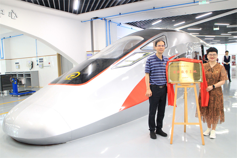 交通职高在育英学院挂牌设立“杭州市交通职业高级中学实践教学基地”和“大中小思政教育一体化基地”。谢鑫、祁长伟代表双方进行授牌。