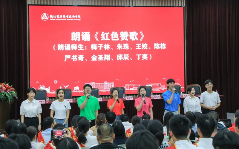 8位师生代表朗诵《红色赞歌》。
