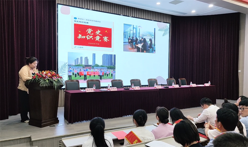 信息技术学院学工办主任蒋玥作为优秀党员、优秀党务工作者代表汇报展示。