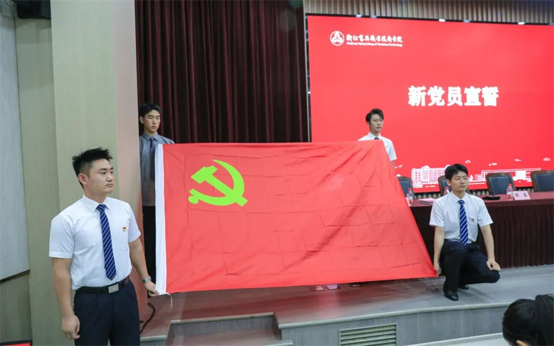 新发展的教职工党员和学生党员进行宣誓,党委委员王贤军领誓。