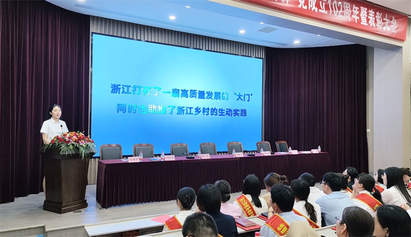 党委书记谢鑫以《锚定发展目标 传承红色基因 高质量党建推进高质量发展》为题发表讲话。她说,一年来,学校扎实开展主题教育,师生党员按照学校党建工作思路和要求,踏实工作、勤奋进取,党建与思政工作取得了进一步发展。学校组织建设进一步夯实,党建品牌进一步唱响,党建研究进一步深入,党建竞赛进一步突破,党建共建进一步发展。全校师生在教育教学、后勤服务、社会服务、疫情防控、服务亚运等方面做了大量卓越而务实的工作,我们走过的足迹坚定而自信。这种坚定源于全校各级党组织的担当作为,这种自信源于全体党员干部和全体育英人的务实奋进。在习近平总书记视察育英20周年之际,育英师生以实际行动交上育英答卷。