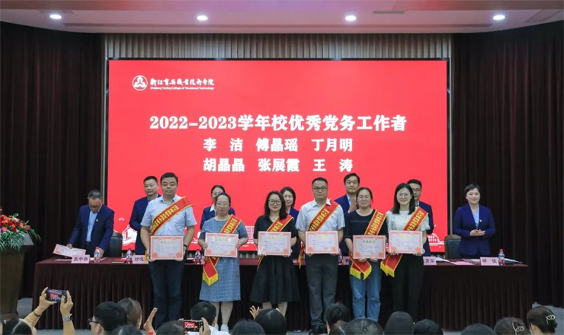 中共浙江省委教育工作委员会全省高校校企地党建联建典型案例获奖者,2023年度浙江省高校思政微课大赛获奖者,中共杭州市教育局委员会2022年度教育系统“两优一先”获奖者,2022年度杭州市五四红旗团委,杭州市教育系统五四红旗团委,2022年度钱塘区政校企党建融合先进党组织、优秀案例,学校党建与思想政治教育工作优秀案例获奖者,学校2022-2023学年先进基层党组织、优秀党员、优秀党务工作者和先进党章学习小组等集体和个人受到表彰。