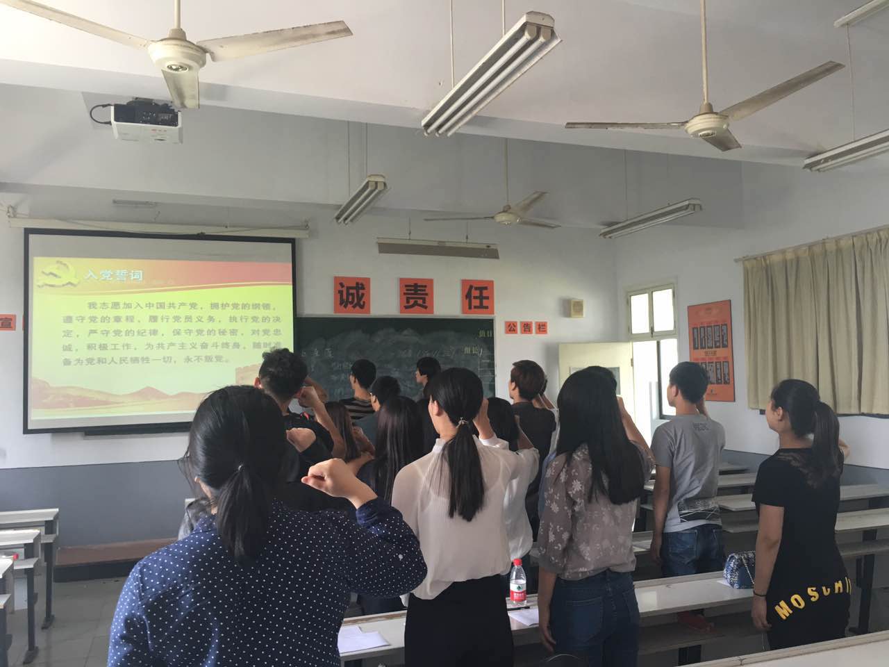 随后,毕业生党员们还结合三年来工作和学习的分享了自己的感受。陆承涛同学首先感谢了学校和分院为自己提供锻炼的机会和平台,感谢三年来各位老师领导对自己无微不至的关心,感谢同学之间的相互帮助。他保证自己会坚持梦想,把梦想和现实并脚踏实地的去实现。