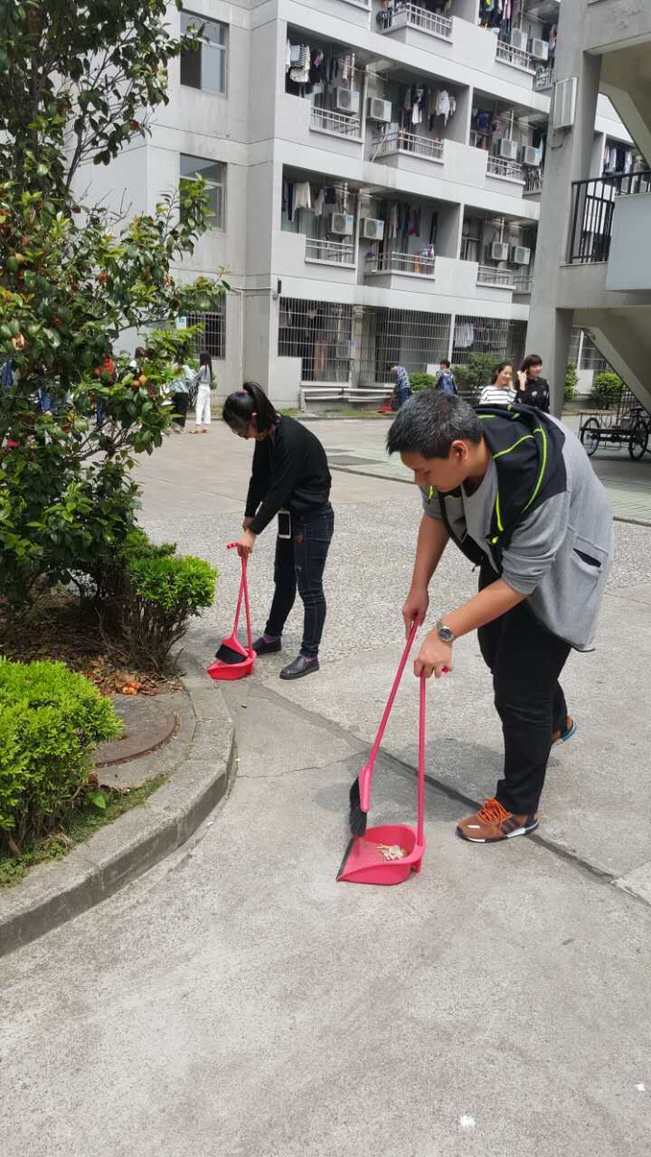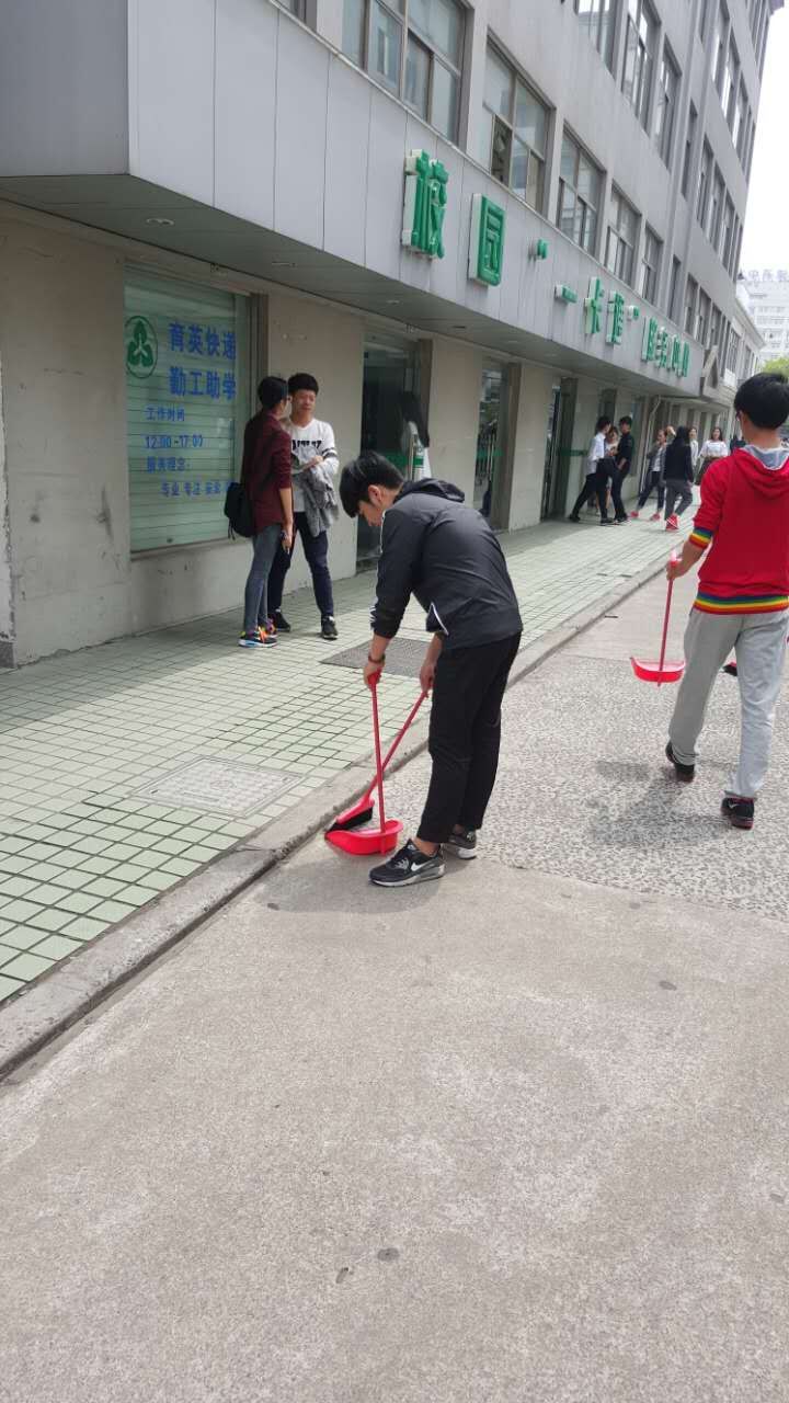 2016年4月13日中午12:30信息分院第一党章小组的10个同学在学生公寓展开捡烟蒂公益活动。活动由李凌子老师负责。