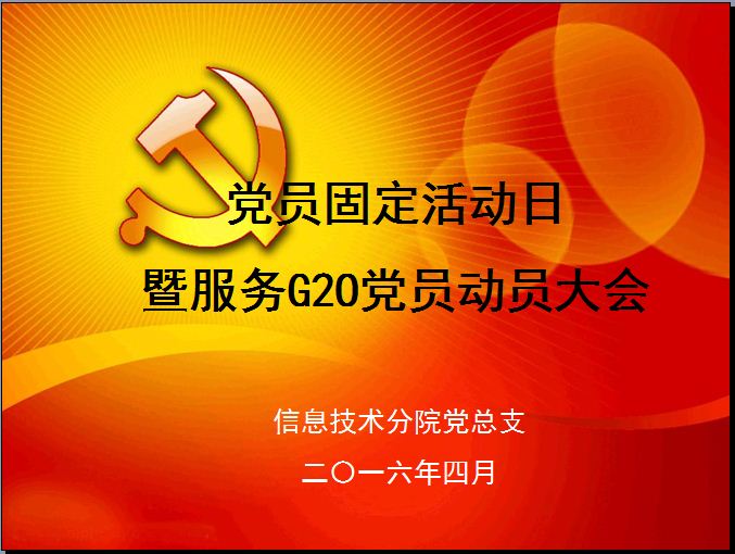 4月15日中午,信息分院党员师生齐聚1507教室,参加党员固定日活动。本次活动日的主题为“服务G20,信息党员走在前”动员大会。