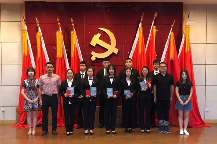 由王贤军老师、丁月明老师、葛珮瑶老师和周莉莎老师给学生预备党员送上“红色生日”礼物——党徽、党章、分院院徽和书籍。
