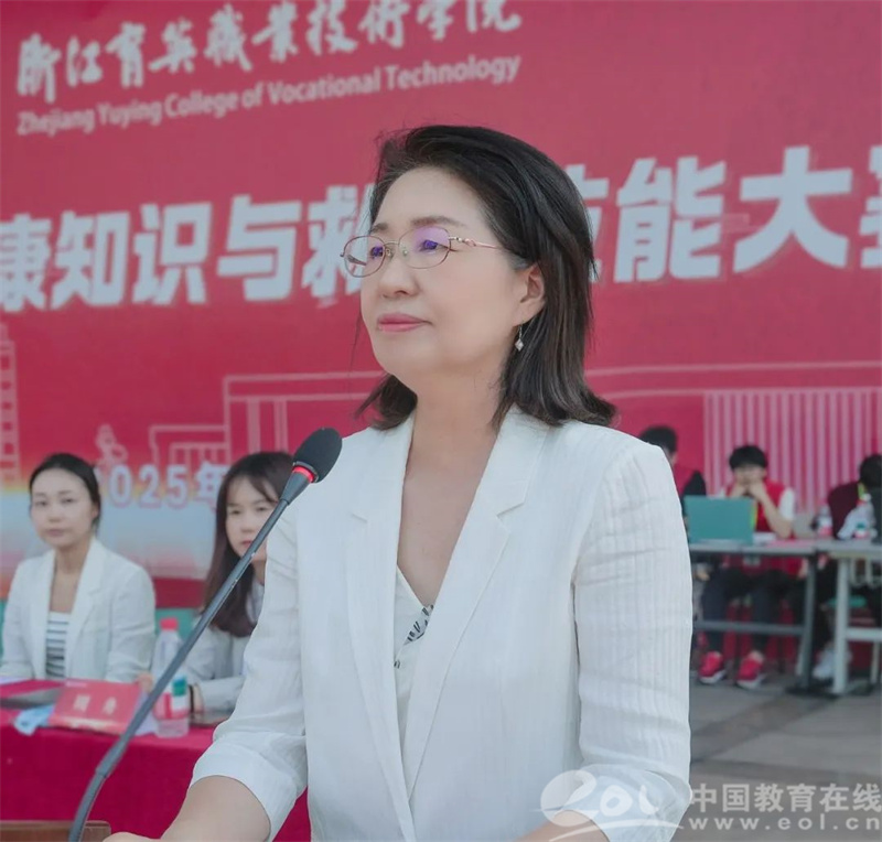 黄爱平在开幕式中致辞,她表示,生命重于泰山,生命教育是育英人始终坚守的育人根基。作为一所立足社会需求、深耕职业教育的院校,培养敬畏生命、守护健康的高素质人才,不仅是教育的使命,更是对“人道、博爱、奉献”精神的传承。多年来,学校将卫生健康与应急救护教育融入人才培养全过程,校园里涌现出与时间赛跑顽强救助突发晕厥学生的好医师、好老师、好学生。这些平凡却闪耀的瞬间,正是育英人用专业与爱心书写的生命赞歌。她希望同学们在竞技中锤炼本领,在合作中传递温暖,真正成为“懂理论、精技术、有情怀”的生命守护者,既要做专业技能的“攀登者”,更要做红十字精神的“传播者”,用所学所能为社会筑起一道坚实的安全屏障,让“大爱奉献”照亮更多角落。