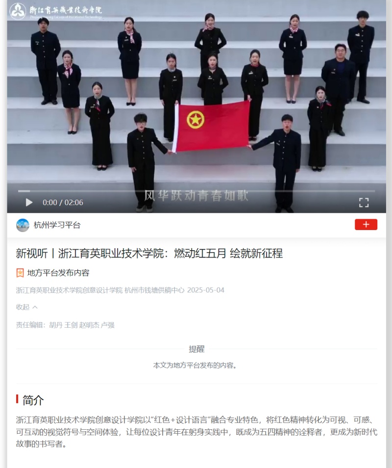 【学习强国】新视听丨浙江育英职业技术学院:燃动红五月 绘就新征程