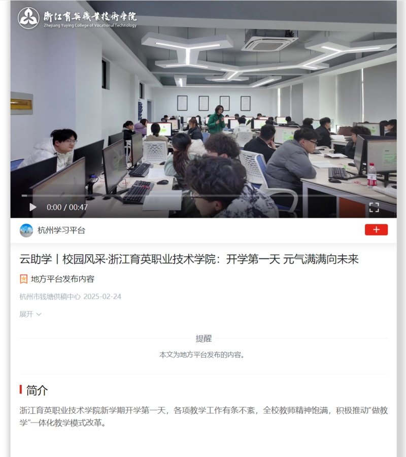 【学习强国】云助学丨校园风采·浙江育英职业技术学院:开学第一天 元气满满向未来